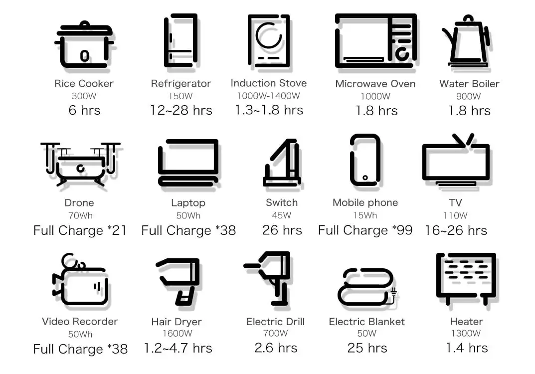 6x AC Output: 2000W, Peak 400W (pure sine wave) 8xUS/JP standard AC (or 5x EU standard)
